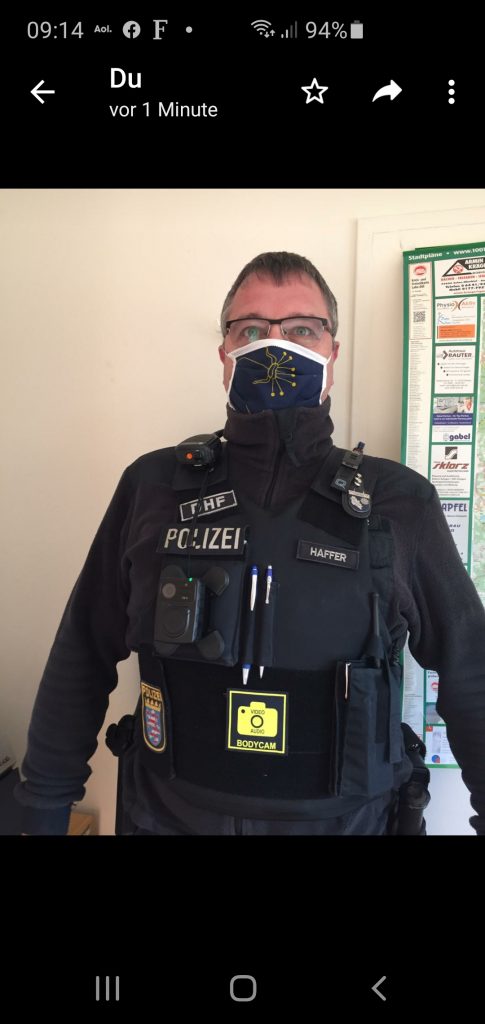 Dieser Mund und Nasenschutz steht meinem Freund Jörg ausgesprochen gut. Ich hoffe er hält was er verspricht und schützt seinen Träger und dessen Gegenüber vor Infizierungen jeglicher Art. Bleib gesund mein lieber Oberkommissar und ein ganz großes Dankeschön für dass, was du und deine Kollegen für uns alle in dieser schweren Zeit leisten.