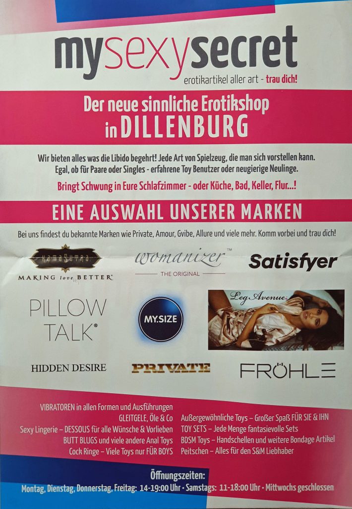 Seit Anfang dieser Woche (1.Dezember 2020) hat der neue sinnliche Erotikshop „mysexysecret“ in der Schelderau 1 in Dillenburg-Niederscheld geöffnet. Man muss schon einige Kilometer zurücklegen, um ein vergleichbares Angebot an Erotikartikel der unterschiedlichsten Art anzuschauen und kaufen zu können. Was bisher lediglich in größeren Städten angeboten wurde, findet man nun auch in nächster Nähe. Der Vorteil gegenüber dem Internetkauf, man kann alles anfassen und bekommt so ein Gefühl auch das richtige Produkt noch diskreter zu kaufen.