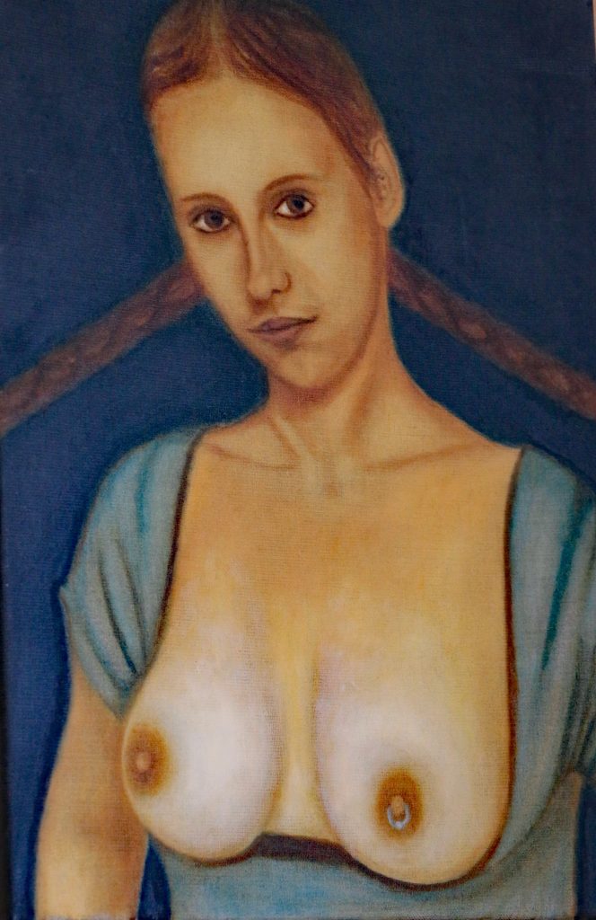 Aus dem Stand heraus kommen wir ins Gespräch und schon eine der ersten Fragen machen deutlich, dass die Mutter einer dreijährigen Tochter nicht so leicht in ein Schema zu pressen ist. Ihr Malstil ist so offen, wie es ihrer jeweiligen Situation entspricht. Weit entfernt vom Expressionismus aber durchaus dem Gegenteil zugeneigt, bewegen sich die Werke von Annika van Vugt überwiegend im Bereich der neuen Sachlichkeit und einer außergewöhnlichen Porträt-Kunst. Zahlreiche Persönlichkeiten aus dem öffentlichen Leben hat sie bereits mit Pinsel und Ölfarbe auf Leinwand verewigt und das mit viel Erfolg. Mit einem besonderen Verfahren lässt sie einige ihrer Bilder im wahrsten Sinne des Wortes fast dreidimensional aus dem Rahmen „wachsen“.
