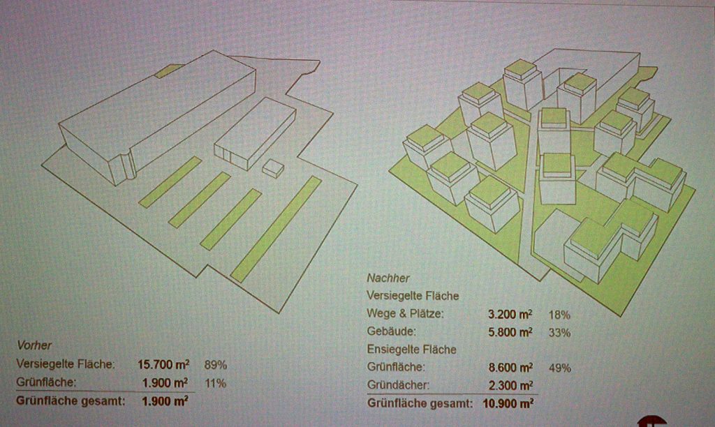 Verblüffung bei einigen der rund 70 Anwesenden über die immer noch reale Höhe von über 18 Meter bei den fünf mittleren Häusern und den restlichen zehn Häusern von effektiven rund 15 Metern. Die GRZ könne hingegen von 0,8 auf 0,6 verringert werden, so Helm und damit dem Ausschuss entgegenkommen. Diese Grundflächenzahl ist neben der Art der Bebauung wichtig zur Bewertung und Nutzbarkeit eines Grundstücks. Sie gibt den Anteil an der Gesamtfläche des Baugrundstücks an, der sich überbauen lässt. Die Angabe erfolgt als Dezimalzahl. Ein Wert von 0,4 sagt aus, dass sich ein Anteil von 40 Prozent am Gesamtgrundstück überbauen oder versiegeln lässt. In der Regel darf der Wert 0,8 nicht überschreiten.