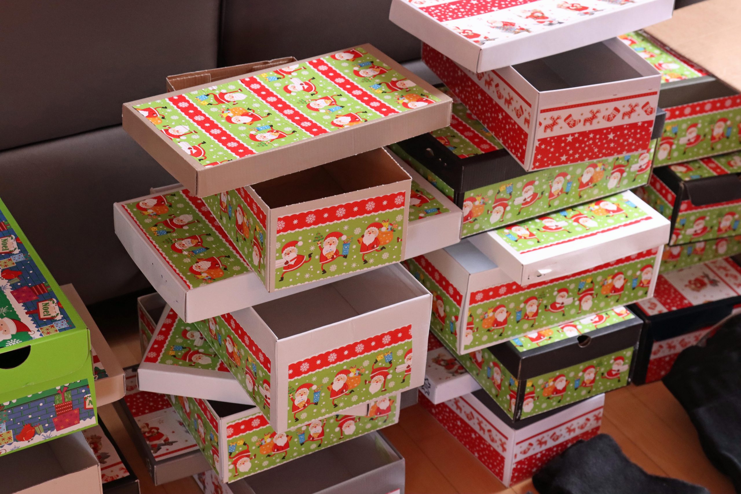 Früher als bei vielen anderen hat die Weihnachtssaison für Alexandra Müller aus Driedorf Münchhausen jetzt schon begonnen. In vielen Räumen ihres schönen Einfamilienhauses mit Blick über den Westerwald, stapeln sich leere und bereits gefüllte Schuhkartons, weihnachtlich beklebt oder noch nicht. Die 50-jährige Büroangestellte ist eine von vielen Weihnachtsengeln, die sich zur Aufgabe gemacht haben osteuropäischen Kindern das Weihnachtsfest zu versüßen. In diesem Jahr werden es bei ihr 40 Päckchen sein, die sie bis spätestens 15. November zu der Annahmestelle von Daniela Peter in Haiger gebracht haben muss.