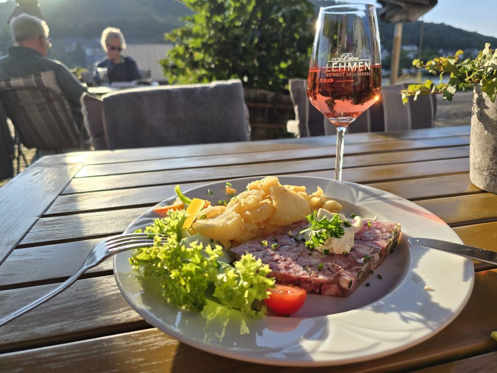 Es hat uns auf den Camping Camping Park Zell verschlagen und schon am Nachmittag dinierten wir in der „Weinbar Alte Stadtmauer“.