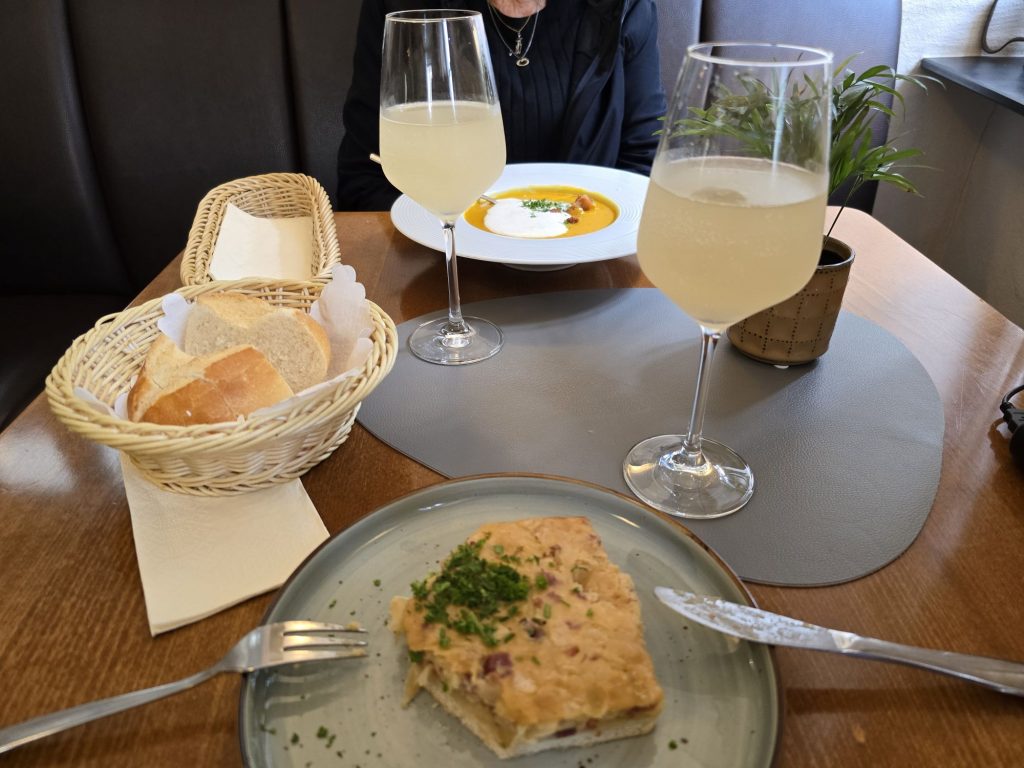 Federweißer mit Zwiebelkuchen, aber eine leckere Kürbischreme-Suppe geht natürlich auch.