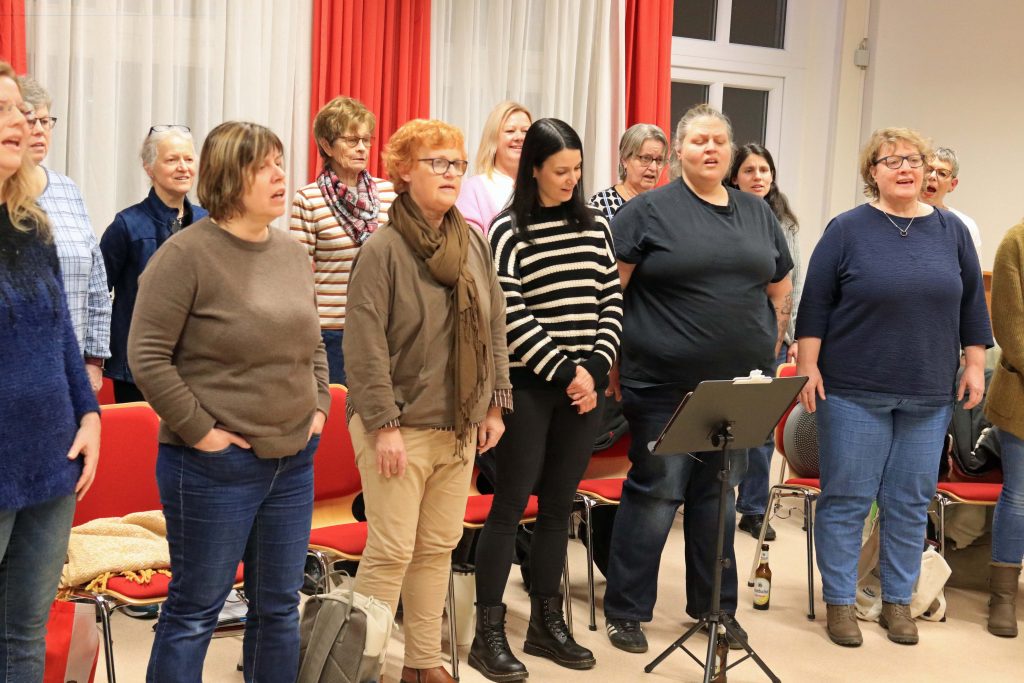 Jana Weirich hofft, dass sich noch mehr Frauen für den Projektchor finden und vielleicht sogar Spaß daran haben, später in Crem Frech mitzusingen. Wer am 29. August 2026 den Weg ins Merkenbacher Bürgerhaus findet, wird garantiert mit einem wunderschönen Gesangsabend belohnt. sig/Fotos: Gerdau