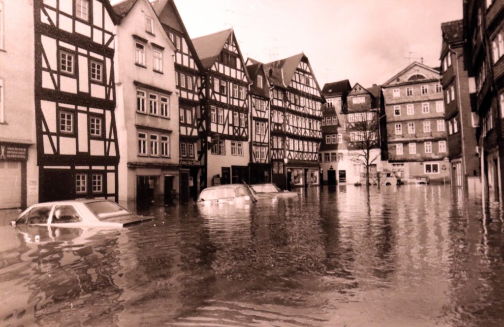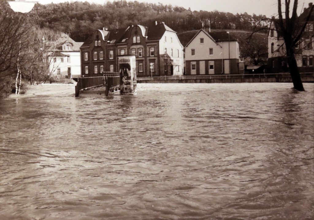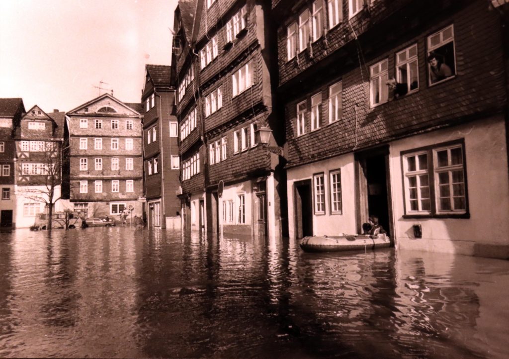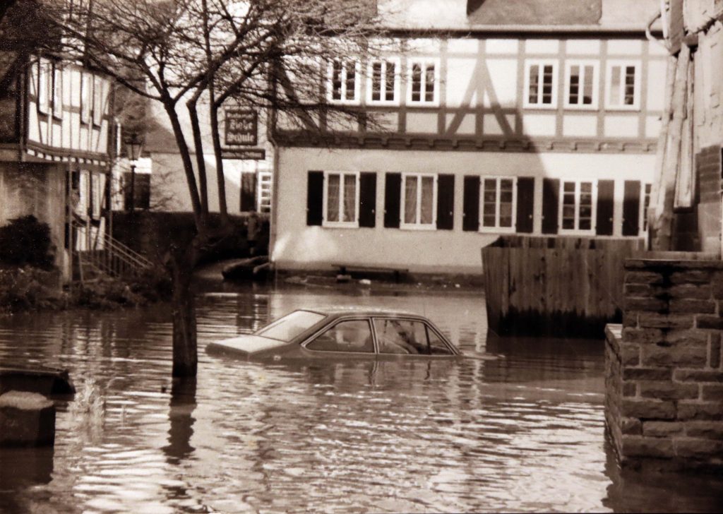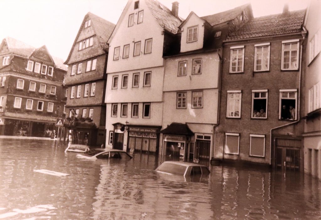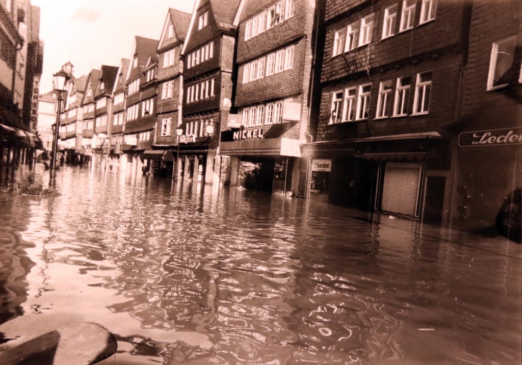 Privat-und Geschäftsleute traf es gleichermaßen schlimm. Es fehlte fast allen der Versicherungsschutz für Fälle höherer Gewalt. Der verstorbene Fotograf und Bildberichter Franz Krämer hatte alles auf Filmmaterial gebannt. Sein Sohn, Rolf Krämer gab mir freundlicherweise die Genehmigung, ein Teil der historischen Fotos in meinem Blog zu veröffentlichen.