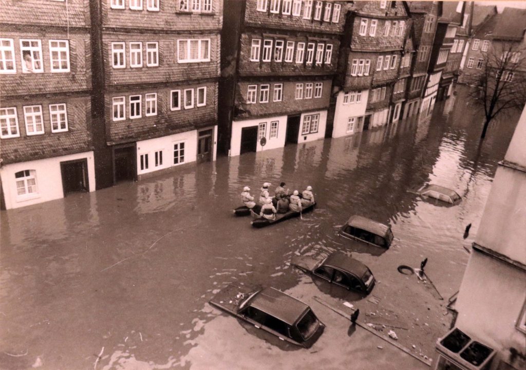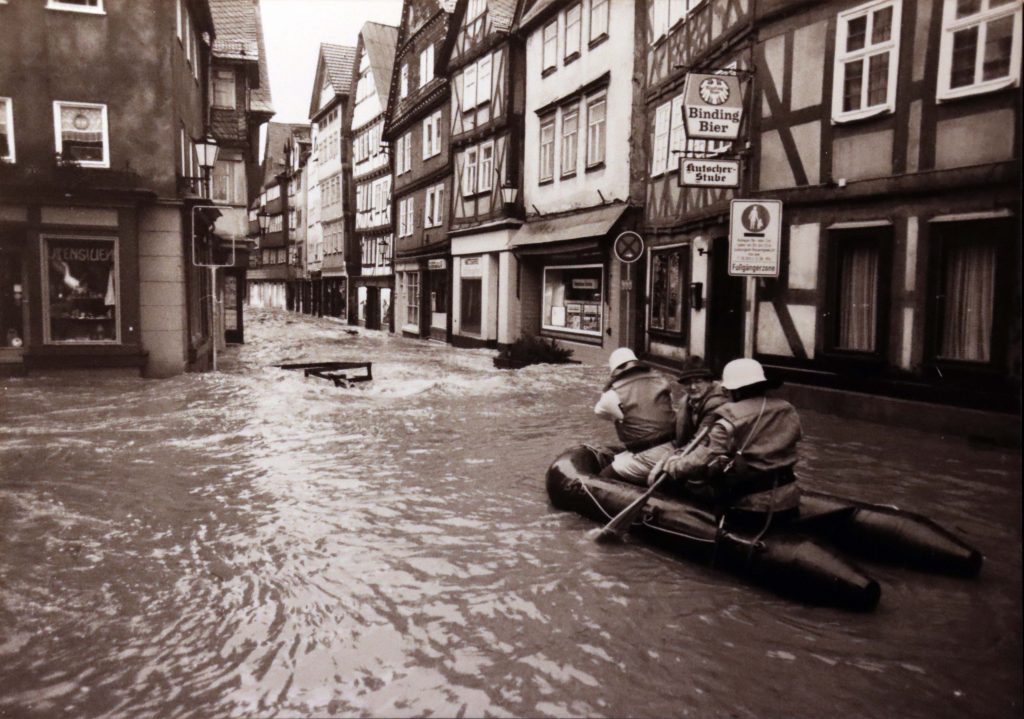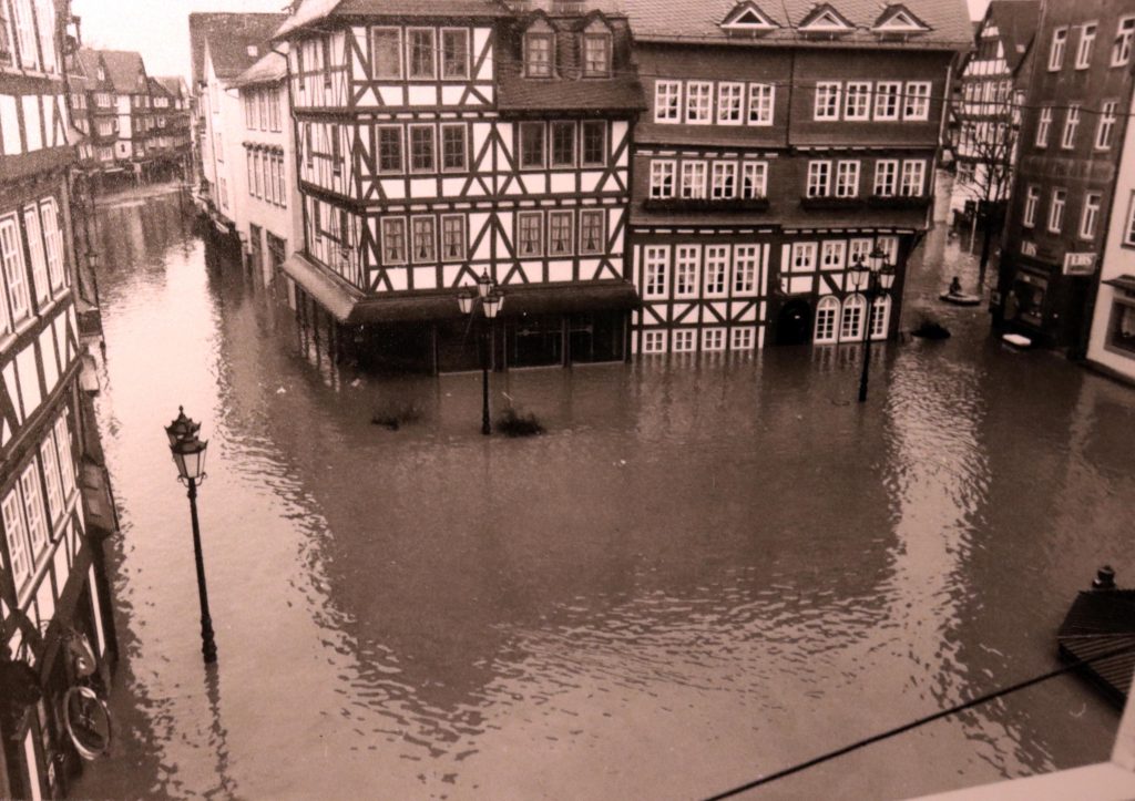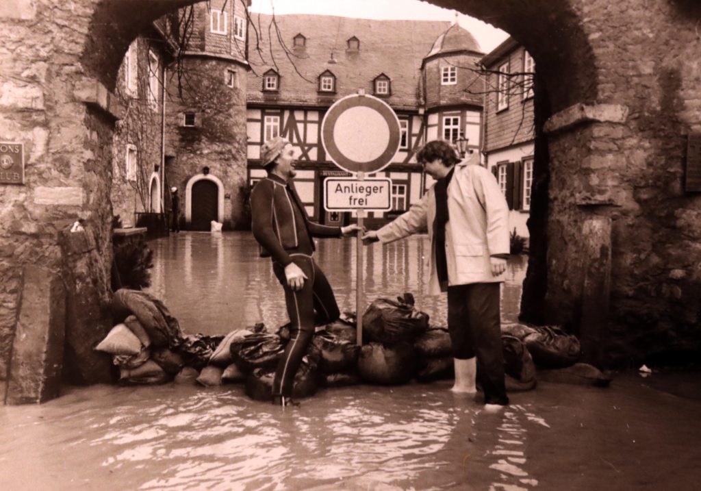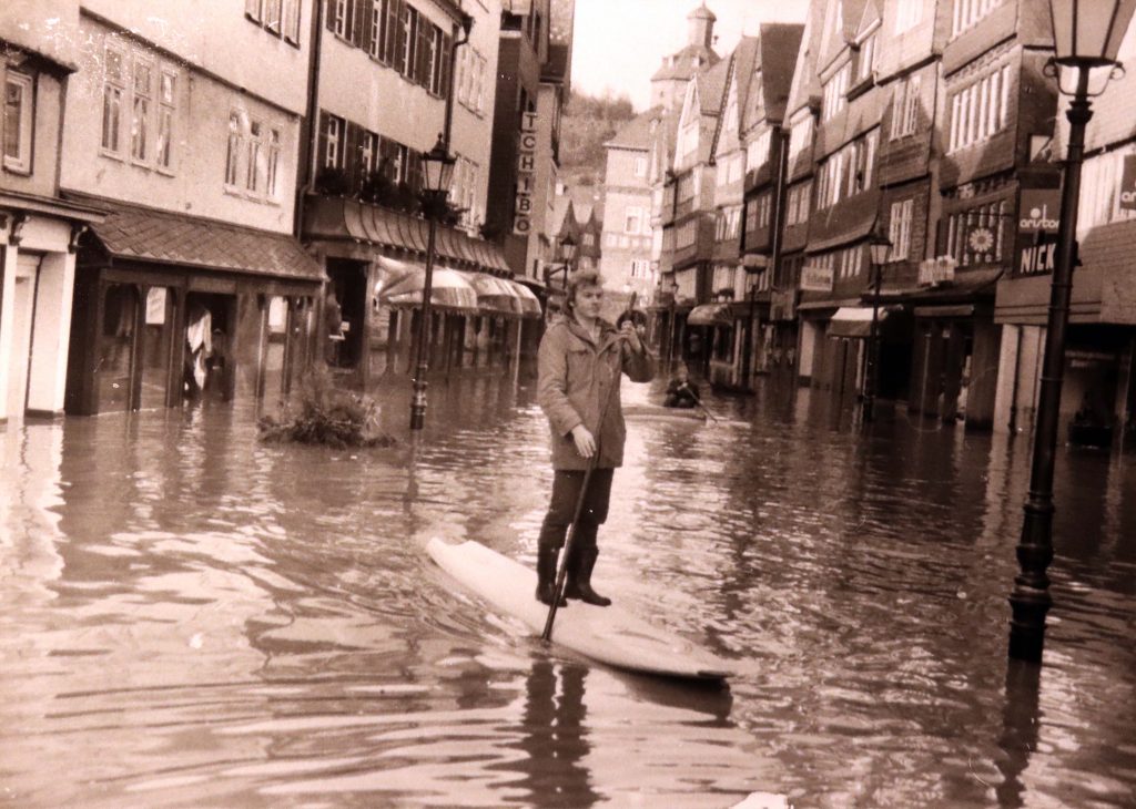 Privat-und Geschäftsleute traf es gleichermaßen schlimm. Es fehlte fast allen der Versicherungsschutz für Fälle höherer Gewalt. Der verstorbene Fotograf und Bildberichter Franz Krämer hatte alles auf Filmmaterial gebannt. Sein Sohn, Rolf Krämer gab mir freundlicherweise die Genehmigung, ein Teil der historischen Fotos in meinem Blog zu veröffentlichen.