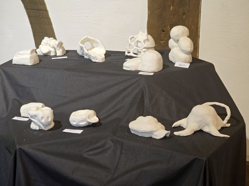 Die Exponate füllten das gesamte Gebäude der Alten Färberei. An Materialien wurde nahezu alles genutzt, was verfügbar war: Zeichnungen, Malerei, Skulpturen, architektonische Modelle und experimentelle Arbeiten. „Es wäre wahrscheinlich einfacher aufzuzählen, was wir nicht benutzt haben“, sagte Ida Immel schmunzelnd. Besonders das Modellieren nahm einen großen Raum ein.