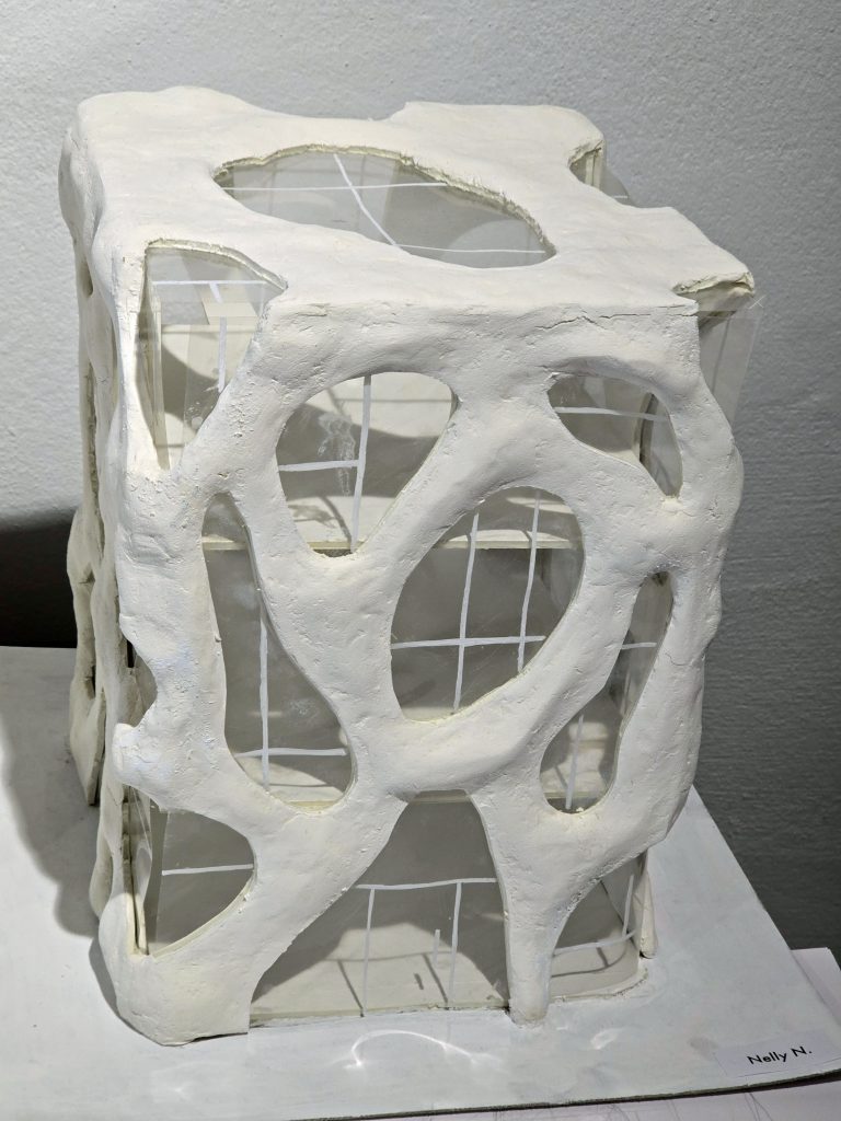 „Viele der Ausstellungsobjekte sind nicht nur aus Talent entstanden, sondern aus Dingen, die man lernen kann“, betonte Rhiana Khaliqi. Die hervorragende Anleitung ihrer Lehrerin habe bei vielen Mitschülerinnen und Mitschülern intuitive Fähigkeiten geweckt. Gleichzeitig stecke in allen Werken viel Übung und Ausdauer. Die Modelle von Gebäuden und Gegenständen entstanden bewusst ohne Vorlagen oder Anregungen – die Schülerinnen und Schüler mussten ihre eigenen Ideen entwickeln. Die einzige Vorgabe: Die Arbeiten sollten einer erkennbaren Kunstepoche zugeordnet sein. Alles andere blieb offen. So entstanden fantasievolle, skulpturale Gebäude, die durchaus als Wohnraum für eine Familie denkbar wären. Friedensreich Hundertwasser hätte an manchen Modellen sicher seine Freude gehabt.