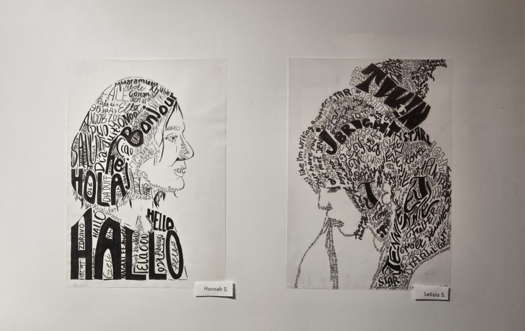 Besonders beeindruckend waren die zahlreichen händisch erstellten Typografie‑Porträts, die sofort ins Auge fielen. Viele davon könnte man sich problemlos in Restaurants, Geschäften oder Büroräumen vorstellen. Die Wand am Treppenaufgang war mit Porträts in Acryl und Öl geschmückt, die die jungen Künstlerinnen und Künstler selbst geschaffen hatten. Ergänzt wurde die Ausstellung durch Plakatgestaltungen zu Themen wie Gewalt oder Mobbing sowie durch die selbst entworfenen Flyer zur eigenen Veranstaltung.