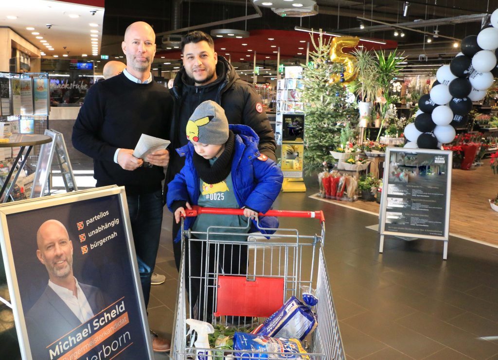 Um Vertrauen in Motivation und für Hoffnung warb der Bewerber um das Herborner Bürgermeisteramt Michael Scheld am vergangenen Samstag erneut und diesmal mit einem Informationsstand im REWE- Einkaufszentrum in der Au.