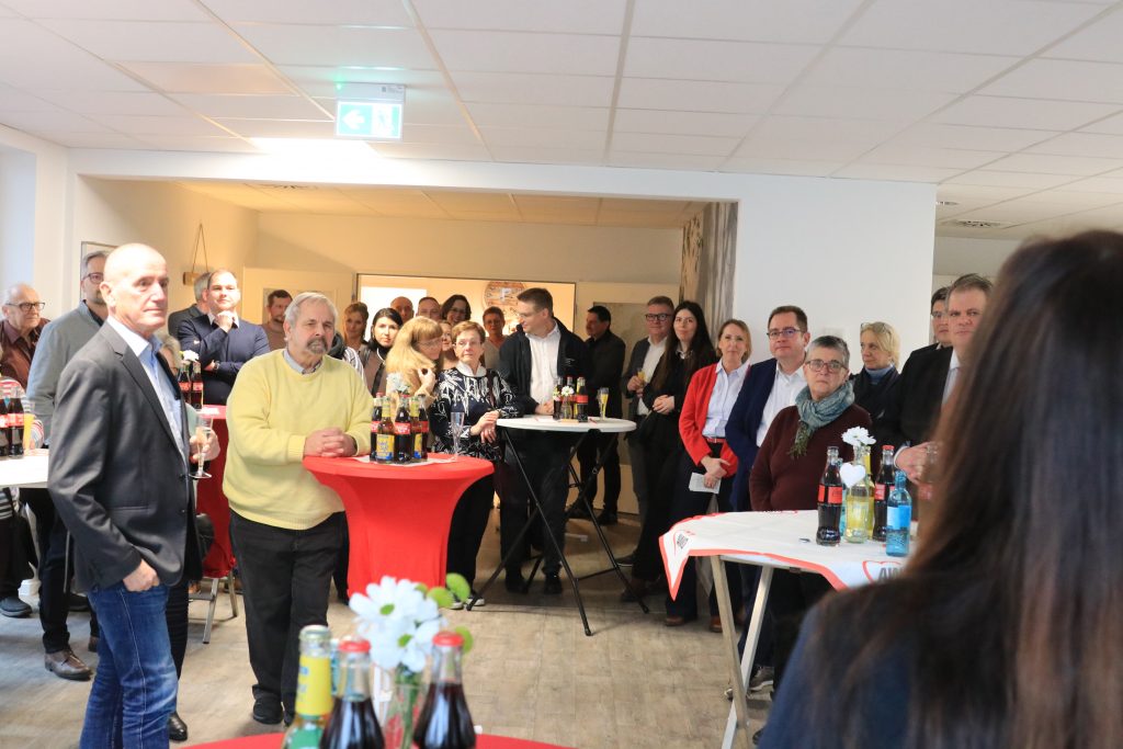 Frank Steinraths, Landtagsabgeordneter und CDU Mitglied überbrachte die Glückwünsche von seinem Parteikollegen Jörg Michael Müller sowie dem Bundestagsabgeordneten Johannes Volkmann (CDU). Sein Begrüßungsgeschenk für „Zum Mariechen“ war das Versprechen an einem Tag als Azubi in der Einrichtung mitzuarbeiten. Der Herborner Bürgermeister Lukas Winkler (CDU) zeigte sich auch im Namen des Herborner Magistrats sehr über das Zusatz-Angebot der AWO Herborn erfreut und fügte hinzu, „ich bin unfassbar froh darüber, was die AWO hier in Herborn alles unterhält.“