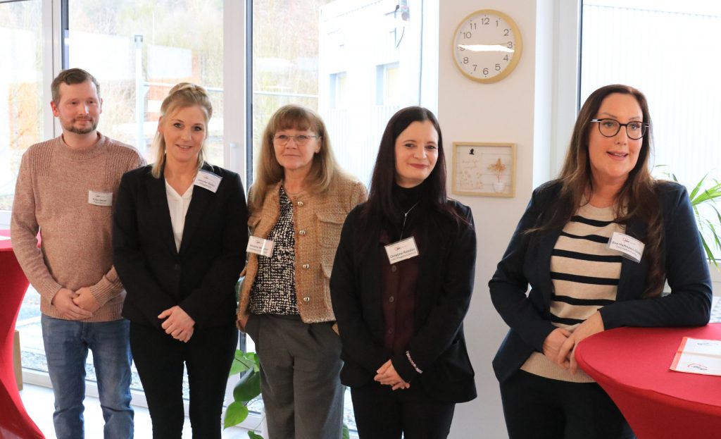 Ein tolles Team: (von links) Fahrdienst Elias Deyer, Jennifer Keller (Pflegekraft), Betreuungskraft Beatrix Wagner, Christina Rosales (Leitung) und Geschäftsführerin Eva Claudin Halfmann-Gräb.
