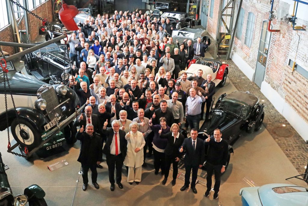 Nach dem erlesenen Essen aus der hervorragenden Küche des Nationalen Automuseums, ließen sich die 40 und 25 Jahre – Jubilare und Jubilarinnen gemeinsam mit dem Ehepaar Loh in der „Vorkriegshalle“ fotografieren.