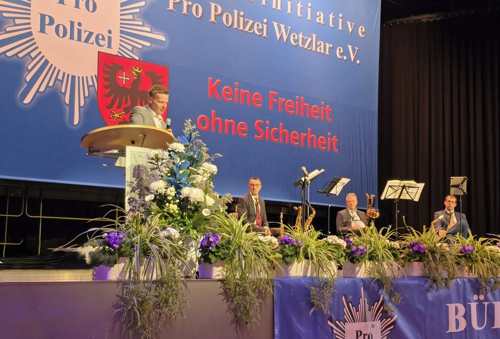 In der Wetzlarer Stadthalle feierte die Wetzlarer Bürgerinitiative Pro Polizei e.V. gemeinsam mit 420 Mitgliedern, Förderern und Anhängern ihren traditionellen Neujahrsempfang. Der 1. Vorsitzende des Vereins Hans Jürgen Irmer freute sich besonders über die teils hochrangigen Angehörige der sogenannten Blaulichtkräfte wie Polizei, Feuerwehr, THW und Rettungsdienste, die dem Event die Ehre durch ihre Anwesenheit erwiesen. Er begrüßte auch die Festgäste die aus vielen anderen Bundesländern gekommen waren, um Manuel Ostermann hautnah erleben zu können.  Der Chef der Polizeikräfte im Lahn-Dillkreis, Kriminaldirektor Joachim Bernhard, ließ es sich nehmen Grußworte zu der Veranstaltung der Bürgerinitiative, die im kommenden Jahr ihren 30. Geburtstag feiert, beizusteuern. Er glaube, dass die Polizei die Rückendeckung in der Bevölkerung dringend brauche und die auch habe (der ganze Saal klatscht). Bernhard lobte Irmer für dessen großes ehrenamtliches Engagement bei der intensiven Unterstützung der Polizeiarbeit.
