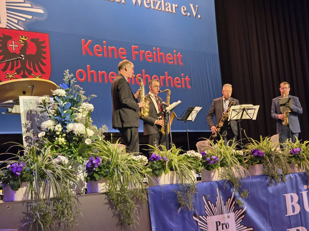Hans Jürgen Irmer bedankte sich bei Manuel Ostermann und betonte, dass er sich Menschen vom Format Ostermann in der großen Politik wünsche. Die Veranstaltung wurde vom Saxophon-Quartett „Saxism“ unter Leitung von Martin Zörb, dem hauptamtlichen Saxofonisten im Landespolizeiorchester Rheinland-Pfalz begleitet.