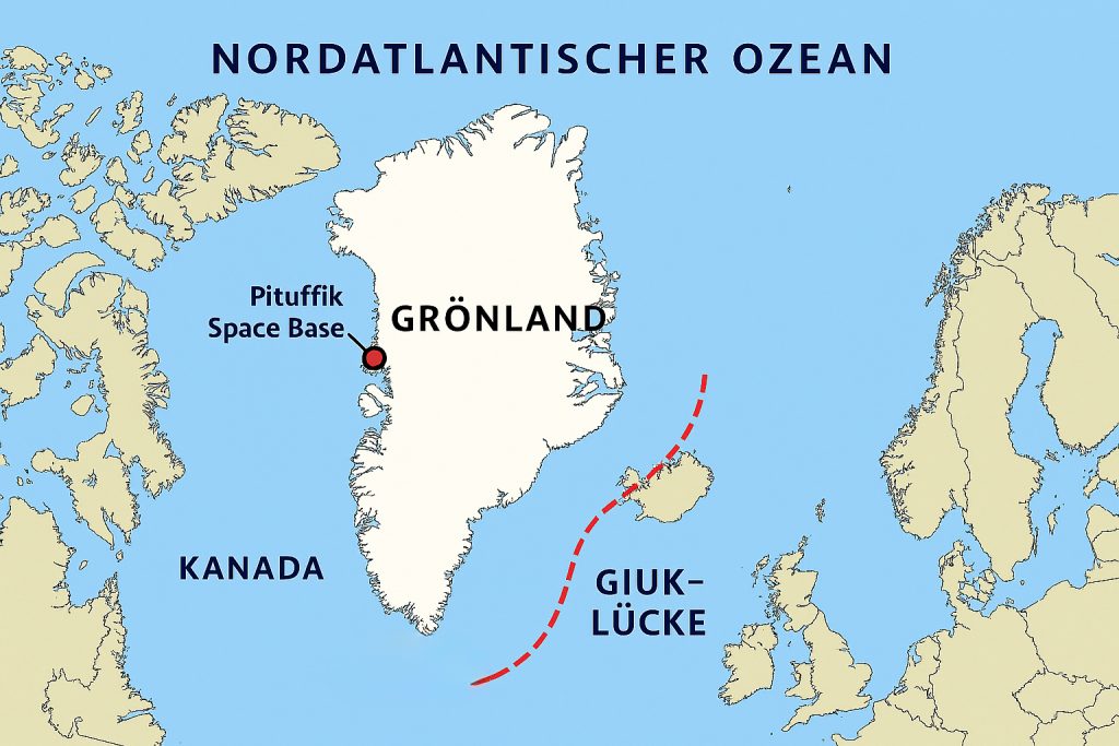 Darüber hinaus ist das Land am Rande der Welt auch militärisch hochinteressant, weil es eine Schlüsselposition zwischen Nordamerika, Europa und Russland einnimmt. Für Frühwarnsysteme und Raketenabwehr ist es somit unverzichtbar und auch die GIUK‑Lücke lässt sich gut kontrollieren. Es bieten Zugang zu der neuen arktischen Routen und ist dadurch ein zentraler Punkt im NATO‑Sicherheitskonzept. Die sogenannte GIUK‑Lücke (Grönland–Island–UK) ist eine der wichtigsten maritimen Engstellen der Welt. Sie kontrolliert: U‑Boot‑Routen zwischen Atlantik und Arktis, NATO‑Zugänge zum Nordatlantik und ermöglich Frühwarnketten gegen russische Aktivitäten.