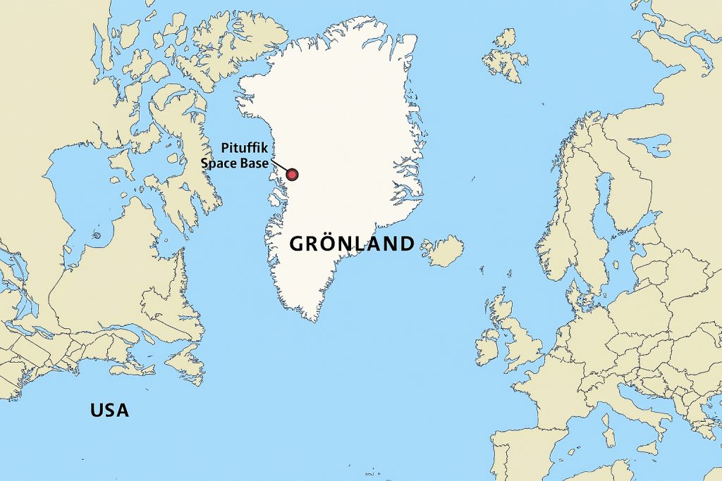 • Amerika betreibt schon seit vielen Jahren mit der US-Pituffik Space Base eine militärisch besetzte Station. Sie liegt im äußersten Nordwesten Grönlands auf der Hayes-Halbinsel, etwa 1.200 km nördlich des Polarkreises und rund 950 km südlich des Nordpols, nahe der Stadt Qaanaaq und ist damit die nördlichste aktive US-Militärbasis weltweit. Die Basis liegt direkt an der Küste zur Baffin Bay und ist 9 Monate im Jahr von Eis umgeben. Ihre Lage erlaubt maximale Sicht auf den Nordatlantik und die Arktis. Damit ist sie ideal für Frühwarnsysteme gegen Raketenstarts aus Russland und dem direkten Zugang zu Weltraumüberwachung und Satellitenkommunikation.