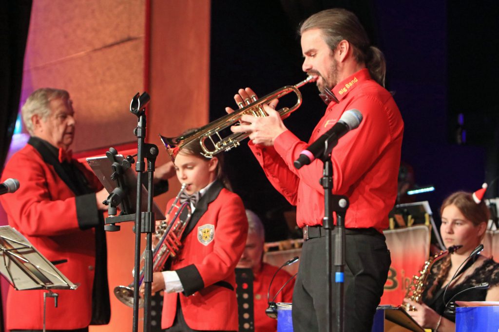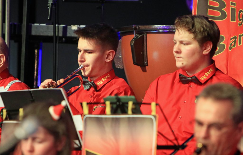 Der Swing, das Markenzeichen der Big Band, die wegen ihres schwarz- rotem Outfit im Volksmund auch gerne die „Roten Teufel“ genannt werden, musste beim diesjährigen Weihnachtskonzert ganz bewusst etwas in den Hintergrund treten. Der Tenor der Veranstaltung lag auf der stimmungsvollen Weihnachtsmusik, die jedoch auch in vielfältigen Musikarrangements zum Ausdruck kam. Die Konzertbesucher zeigten sich begeistert und nicht nur Blaskonzertexperten gefiel die breite Palette der vorgetragenen Stücke. sig