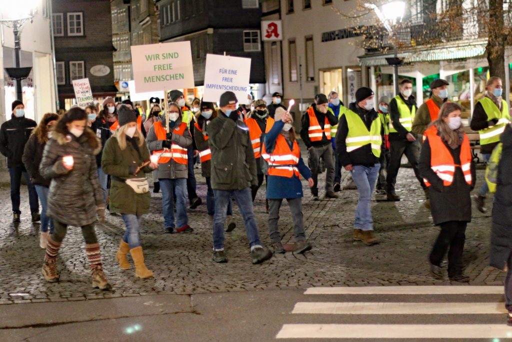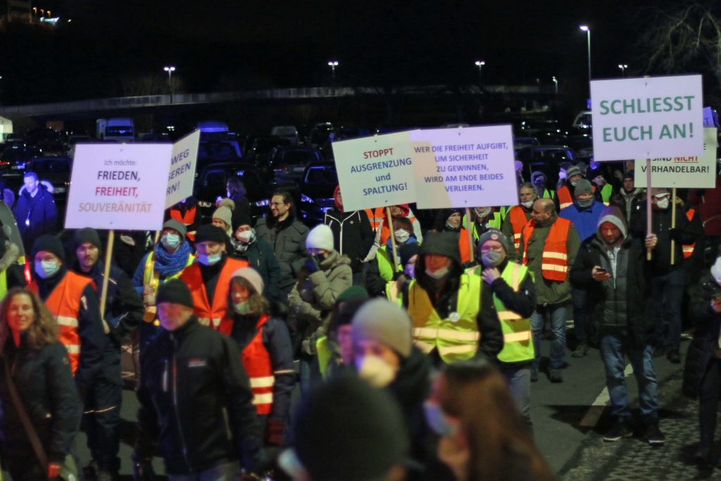 „Wir wehren uns gegen die geplante Impfpflicht der Regierung“, sagte eine der Teilnehmerinnen, die selber zweimal geimpft und einmal geboostet ist. Sie fühle sich extrem gegängelt und bevormundet und das sei überhaupt nicht in Ordnung. „Ich habe mich freiwillig aus Einsicht impfen lassen und so soll es auch bleiben“. Ihre Schwester, nach eigenen Angaben ihr halbes Leben lang politisch sehr links orientiert und ehemals Grünen-Wählerin aus Leidenschaft, ist ungeimpft und will es auch bleiben. Das sei ihre Entscheidung und sie sei Frau genug das selber zu bestimmen. Tatsächlich waren auffallend viele Frauen unter den Demonstrierenden. Eine von ihnen sagte, dass sie sich noch im Entscheidungsprozess befinde, ob sie sich impfen lassen solle. Eine Impfpflicht lehnte sie kategorisch ab. Diese Entscheidung wolle sie völlig unbeeinflusst und in voller Vernunft treffen.