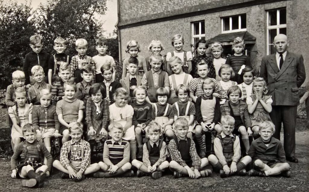 In den beiden Anfangsjahren bekamen wir in der Schule noch eine Schulspeisung, Quäkerspeise genannt, von der Organisation American Friends Service Committee (AFSC) in Form von Suppeneintopf, Hafer- oder Grießbrei. Da war auch schon mal ein Riegel Schokolade dabei, von der wir sonst nur träumen konnten. Unser Lehrer in der Grundschule hatte wohl bei dem Studien-Fach Pädagogik manche Dinge fehlinterpretiert. Wir lernten viel bei ihm, aber auch was schmerzende Handflächen sind. Während andere Lehrer Rohrstöcke benutzten, war er schon ein Schritt weiter. Ein Klassenkamerad, dessen Eltern eine Druckerei besaßen, musste ihm immer die ausgewechselten Kunstoffleisten aus der Papierschere mitbringen. Unaufmerksamkeit wurde so direkt mit Leistenschlägen in die Handfläche geahndet und wir beschworen den Mitschüler oft diese Teile nicht mehr mitzubringen. Vergeblich, aber man gewöhnte sich daran. Lehrer L. war Mathematik-Fan und so begann der Unterricht nach dem „Guten Morgen Herr L.“ noch im Stehen mit dem großen 1×1. Wer seine Frage richtig beantwortete durfte sich setzen. Ich blieb meistens stehen und entwickelte im Laufe der Jahre einen regelrechten Hass auf Zahlenspiele.