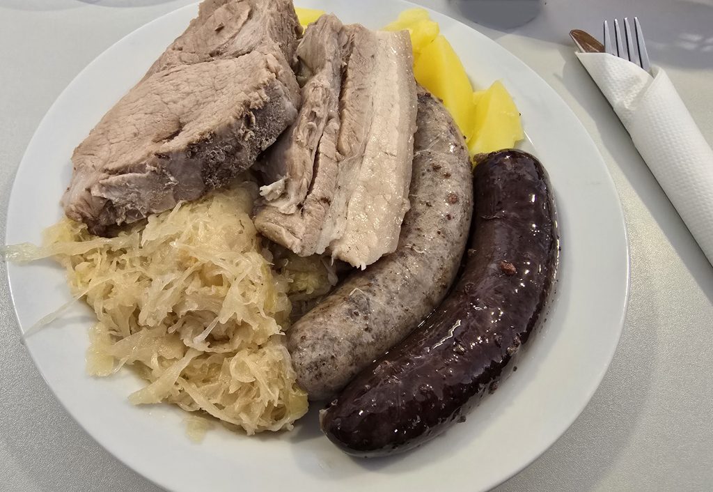 Der Duft von Blut- und Leberwurst, Sauerkraut und Wellfleisch ließ so manchem schon vor dem Essen das Wasser im Mund zusammenlaufen. Unter die zahlreichen Einheimischen hatten sich auch manche auswärtigen Gäste gemischt. Als die Teller aufgetragen wurden, stockte so manchem der Atem. Solch große Portionen sieht man nicht alle Tage. Sicherheitshalber lagen schon Verpackungsmittel für die Überreste bereit und auch eine gute Wurstsuppe durfte jeder der wollte mit nach Hause nehmen. Apropos mitnehmen. Viele Besucher zogen es vor ihre Schlachtplatte mit ihren Lieben zusammen zu Hause zu essen. Kein Problem, auch dafür hatten die Landfrauen vorgesorgt.