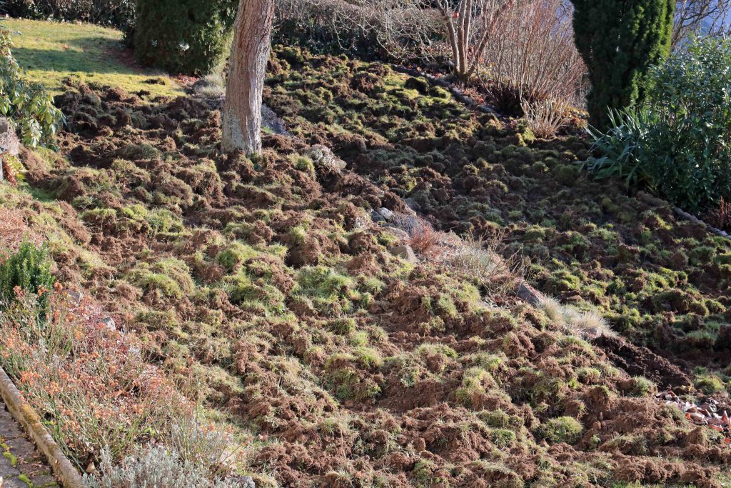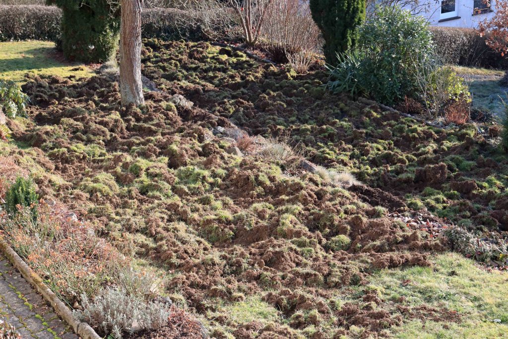Seit der Wolf sich in deutschen Wäldern angesiedelt hat, beherrscht das Thema Medien, Förster und Jäger sowie die Landwirte. Derweilen verwüsten die Wildschweine fast ungehindert Kulturflächen wie Gärten, Fußballplätze und Friedhöfe. Ganz besonders schlimm hat das Borstenvieh es in dem einst gepflegten Garten der Herborn-Seelbacherin Sieglinde Weidl getrieben. Die alleinstehende 83-Jährige war entsetzt, als sie vor ein paar Tagen morgens aus Fenster schaute und sah, dass ihr recht großer Garten fast total umgepflügt war.